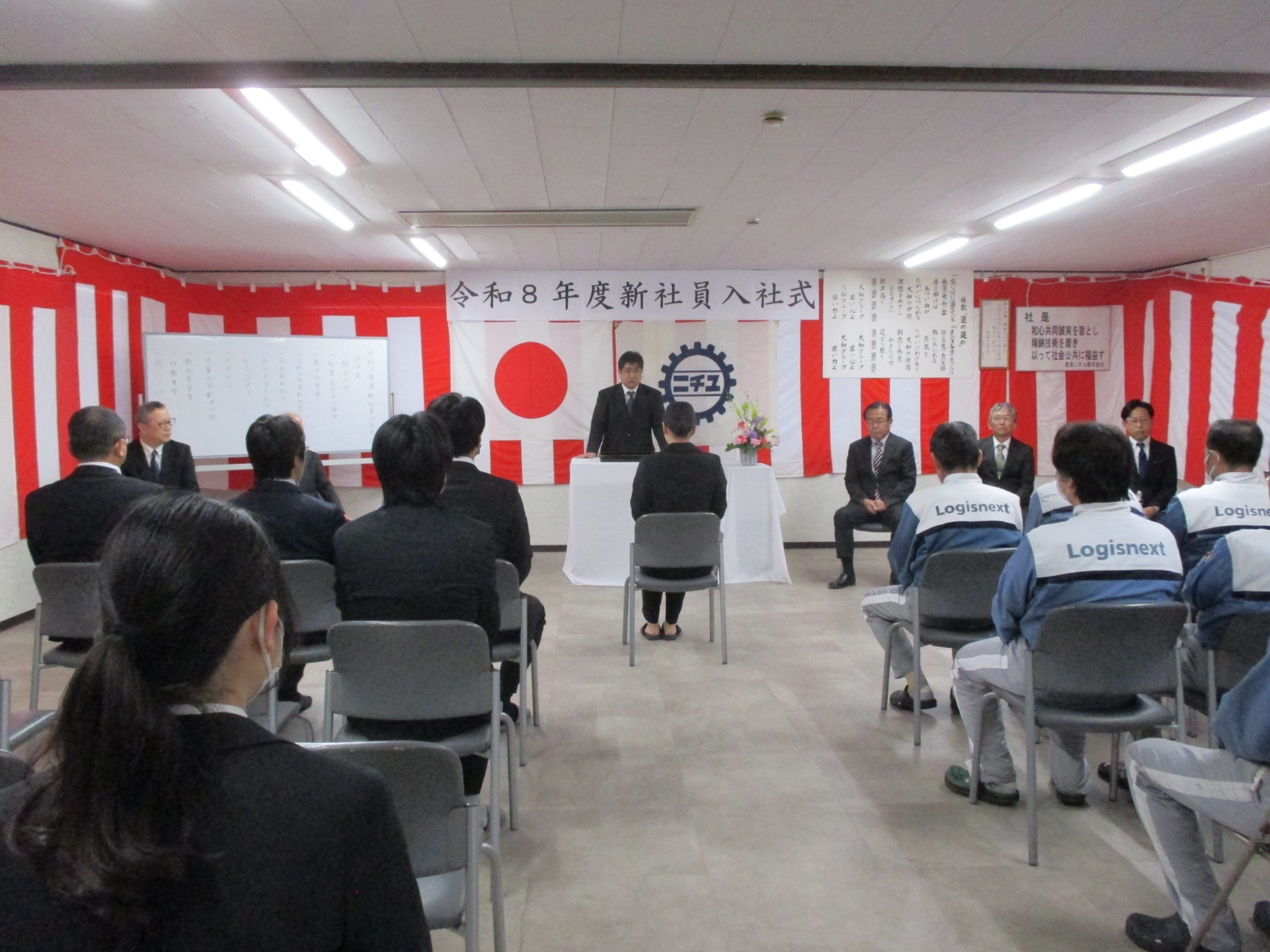 | 2026/04/01 令和8年度入社式を執り行いました! 新卒1名、中途採用の方3名も含めてさらに新しい仲間が増えました! 明るく元気な姿に、職場の雰囲気も明るくなります。 |